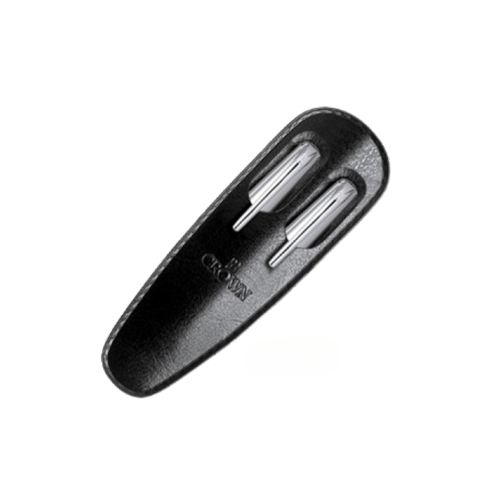 roteção elegante para quem carrega duas canetas no dia a dia. Em courino preto, o estojo duplo da Crown acomoda duas peças com segurança e discrição, mantendo-as livres de riscos dentro da bolsa ou nécessaire. Compacto e leve, é o complemento ideal para esferográficas, rollers ou tinteiros e também uma ótima opção para presentear junto de um instrumento de escrita.